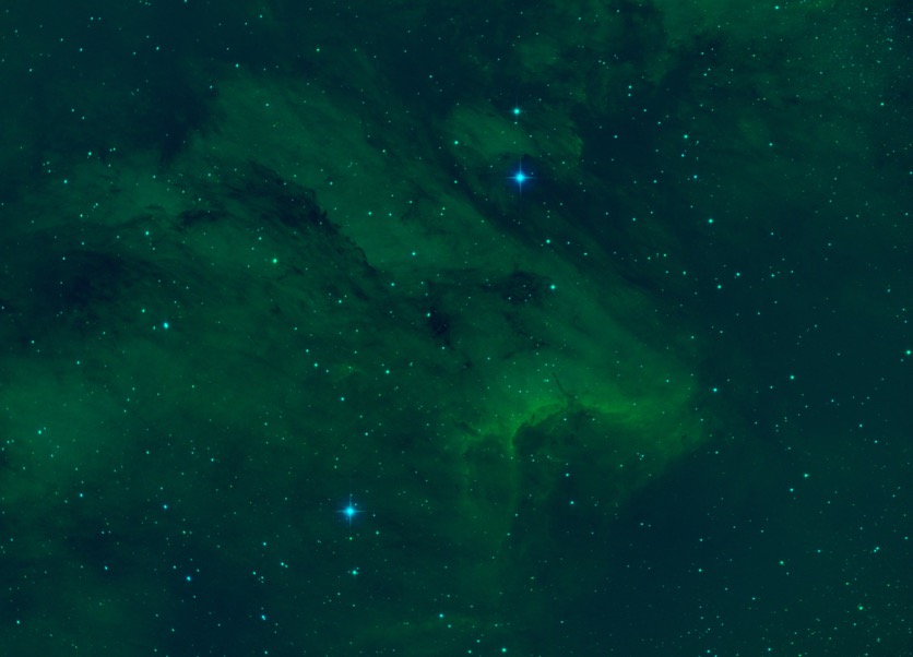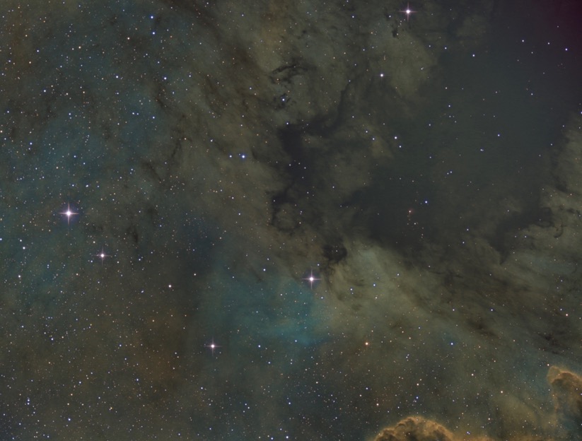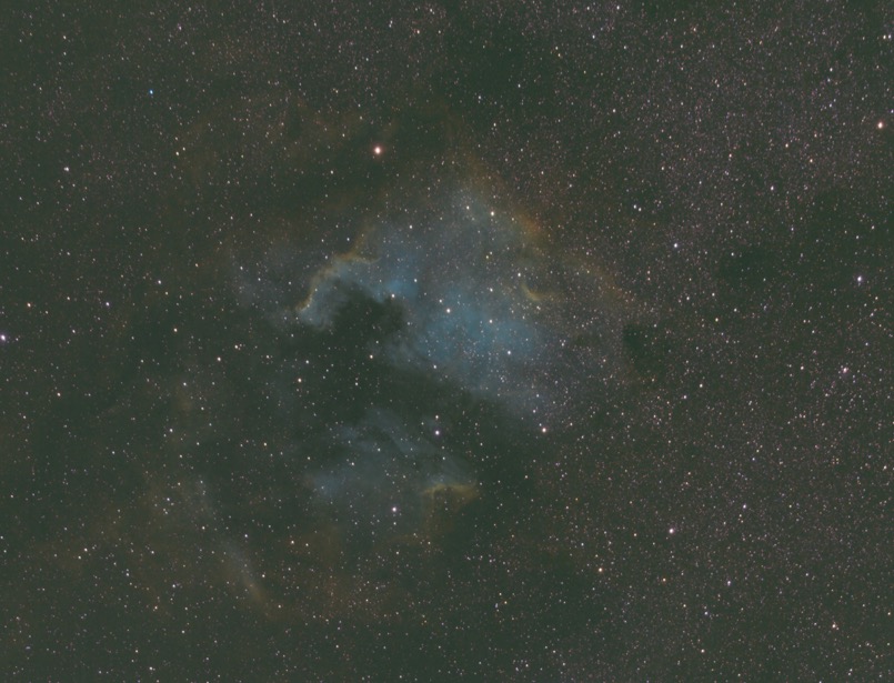 Mit meinem 10" nahm ich bis es richtig dunkel war M03 mit der ASI1600 auf. Danach folgte ein Bild von NGC7000 mit der Hubblepalette. Das Bildfeld ist allerdings winzig. Insofern konnte ich nur einen kleinen Teil des Nebels aufnehmen. Aber immerhin konnte ich diesmal genügend Fotos von allen Kanälen machen.